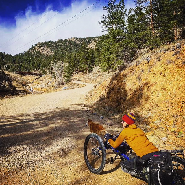 On trails I have a variety of devices; two different off-road mobility devices and a Nordic sit ski. The Nordic ski is a bucket seat with two skinny skis attached underneath, the same width as a Nordic ski track. I push myself with ski poles. It is lovely to get outside in the winter, get some cardio and be with friends. The trails locally that I have been exploring include Trail Ridge Road and Wild Basin area trails in Rocky Mountain National Park.